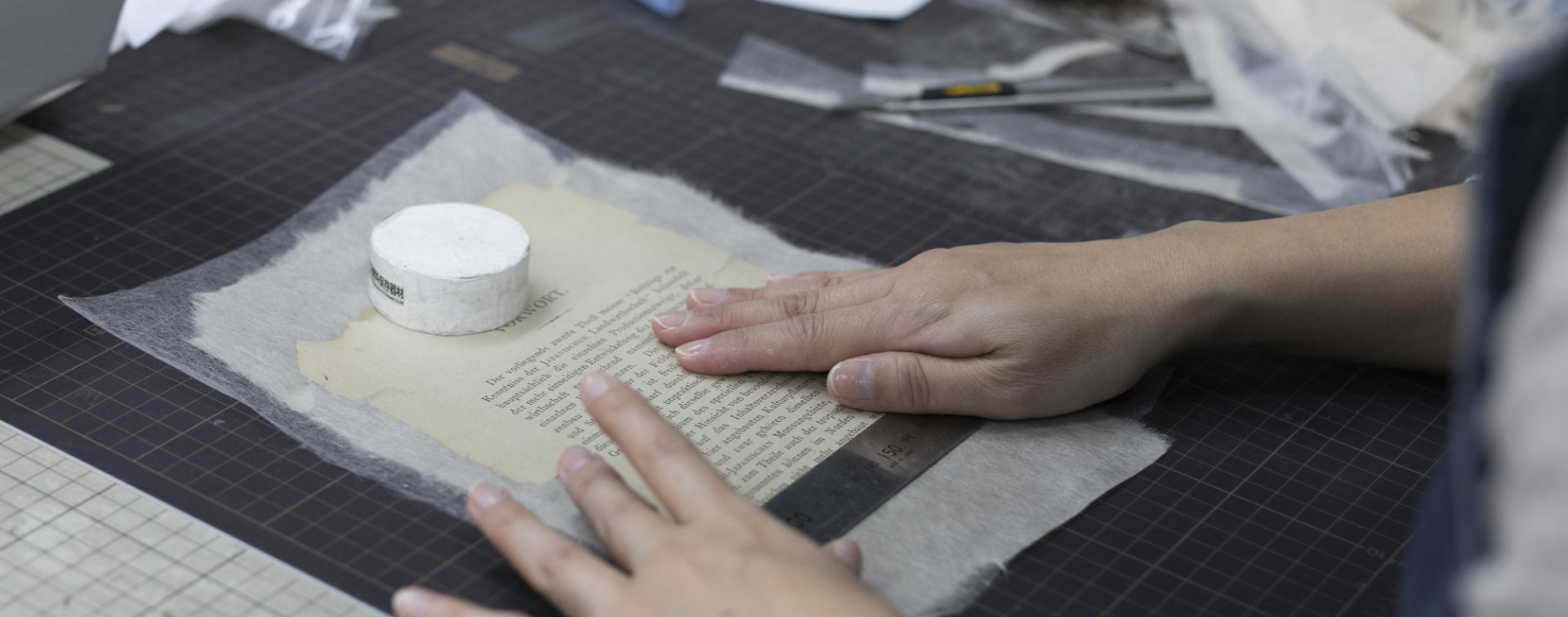 Due to absorption of acidic gases from the atmosphere and excessive dryness,leather will crack and eventually degrade into a reddish-brown powder. By placing tengu on the cover of leather bound materials, further deterioration can be prevented. Making use of its thinness, toughness, and flexibility, our paper is often used for the restoration of leatherbound materials. In addition, there are a wide range of restorative uses of tengu for other materials which have become difficult to use due to deterioration from acidity - it can be layered on both sides of the material, weakened parts can be compensated for, and tears can be fixed. Also, tengu's thinness is convenient for restoring double-sided or color documents. Made from 100% plant fiber, the resiliency of tengu has been shown to last for as long as a thousand years. Today, in the libraries and museums of the world, important papers and cultural properties awaiting restoration are accumulating. We would like our tengu to be of service in passing on the world's history to future generations. With this in mind we go to work excited to engage in its production.